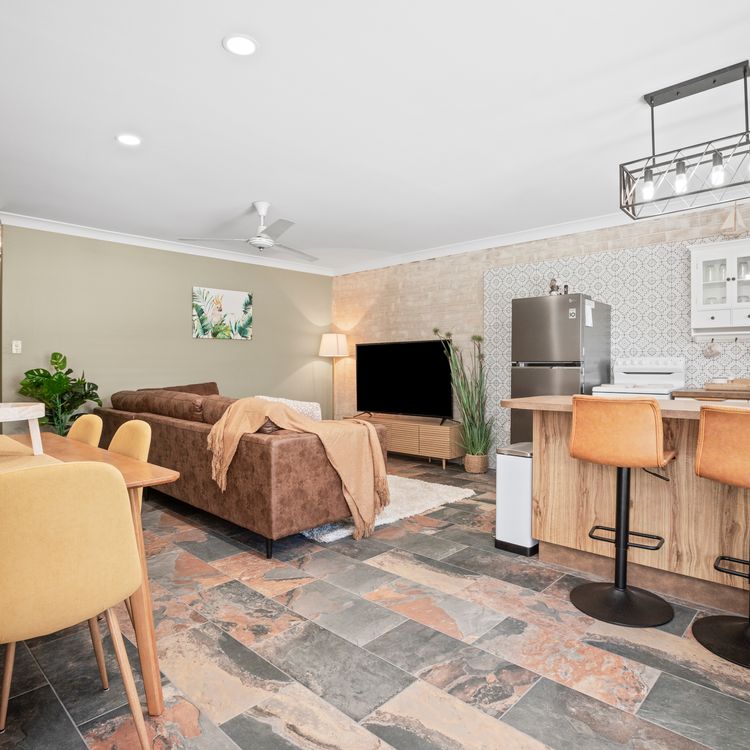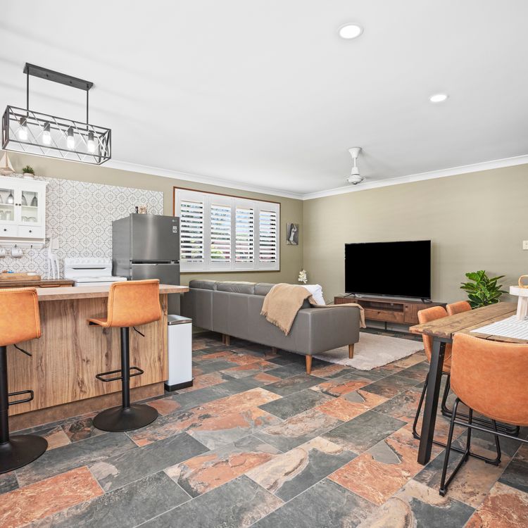 With plenty of windows facing the ocean, Avalon 2 is bright and breezy, giving you that true holiday feel. The spacious living area features comfortable lounge seating, multiple TVs, and Wi-Fi access, making it easy to relax after a day exploring Yamba. The fully equipped kitchen includes a dishwasher, microwave, and oven, ensuring mealtime is effortless.