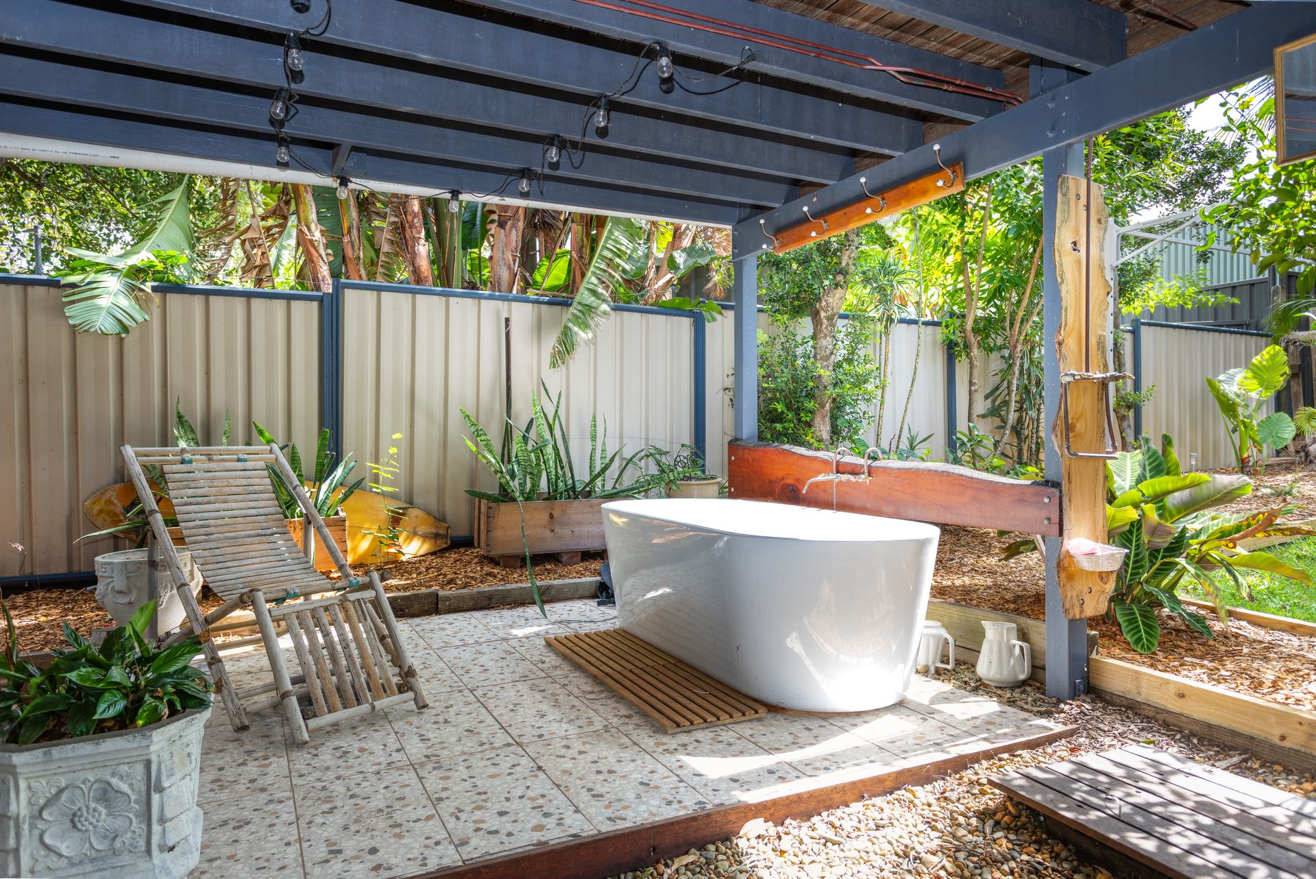 There’s also an outdoor bath for something a little different — perfect for a quiet soak after the beach.