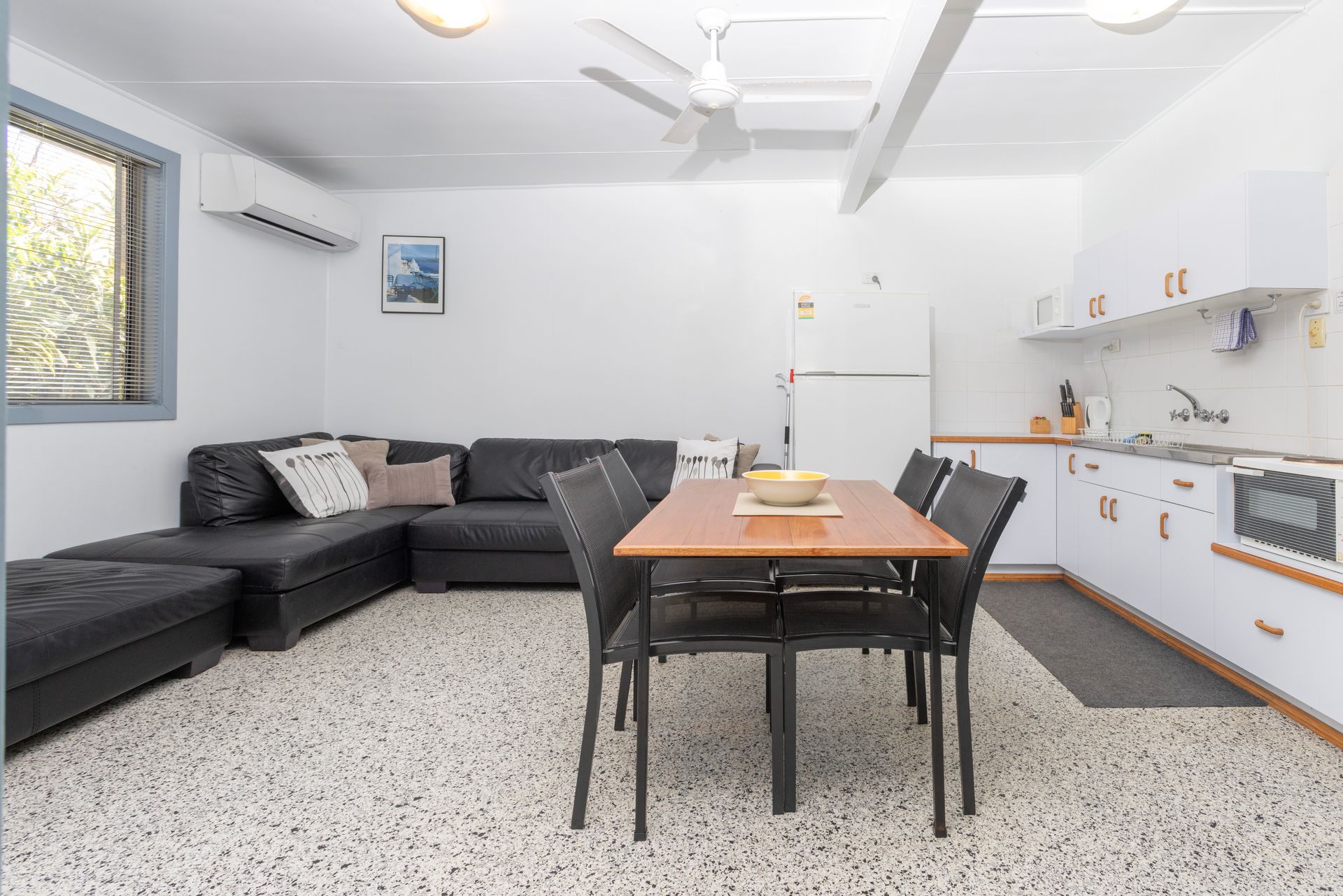 Inside, you’ll find a well-equipped kitchen with dining area, a spacious living room to unwind after a day at the beach, and a separate bathroom for added comfort. Guests can also enjoy access to a communal laundry and BBQ facilities set within the shared garden area — perfect for relaxed holiday afternoons.