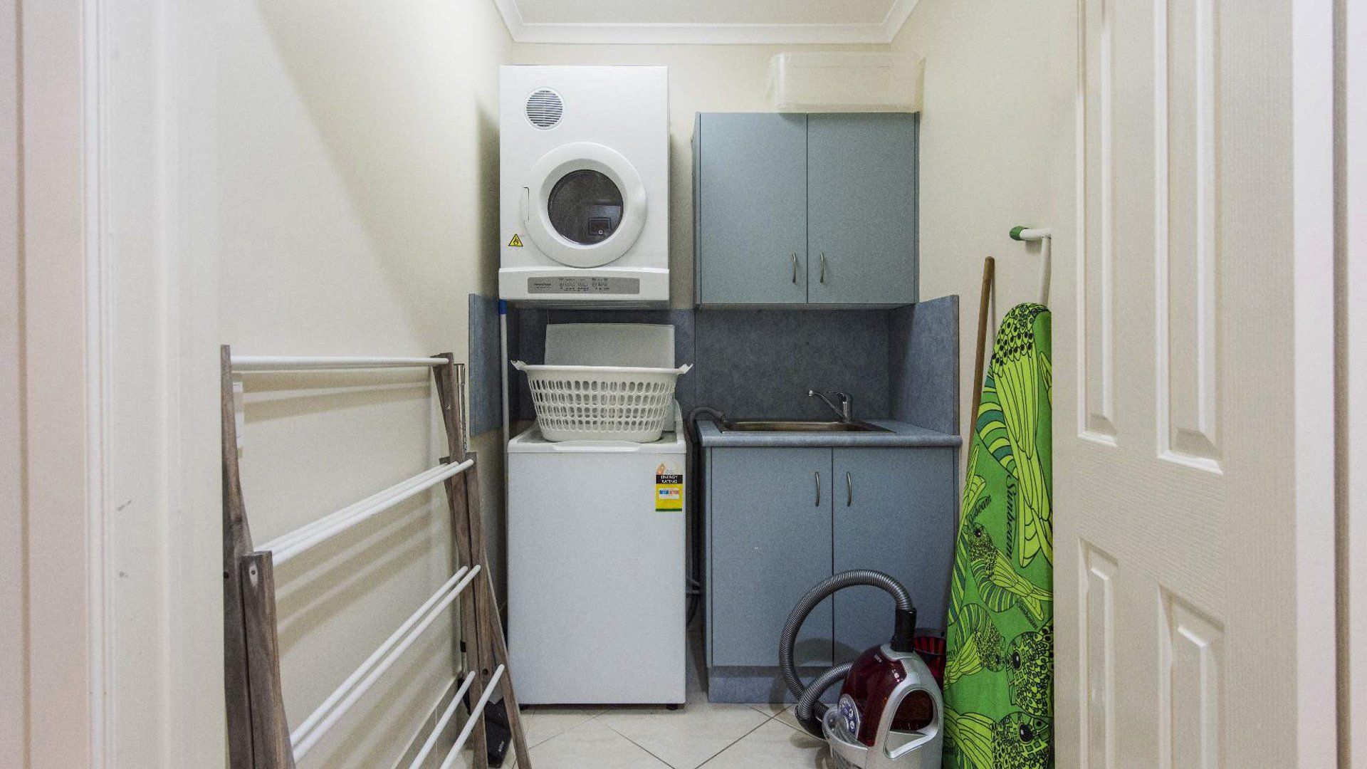 With two pristine bathrooms, comfort is at the forefront of this stunning home. The open-plan lounge, complete with a big-screen TV, provides the perfect space to unwind. The fully equipped kitchen, featuring a dishwasher, microwave, oven, and modern appliances, makes home-cooked meals effortless. A laundry with a washing machine and clothes dryer ensures a stress-free stay.