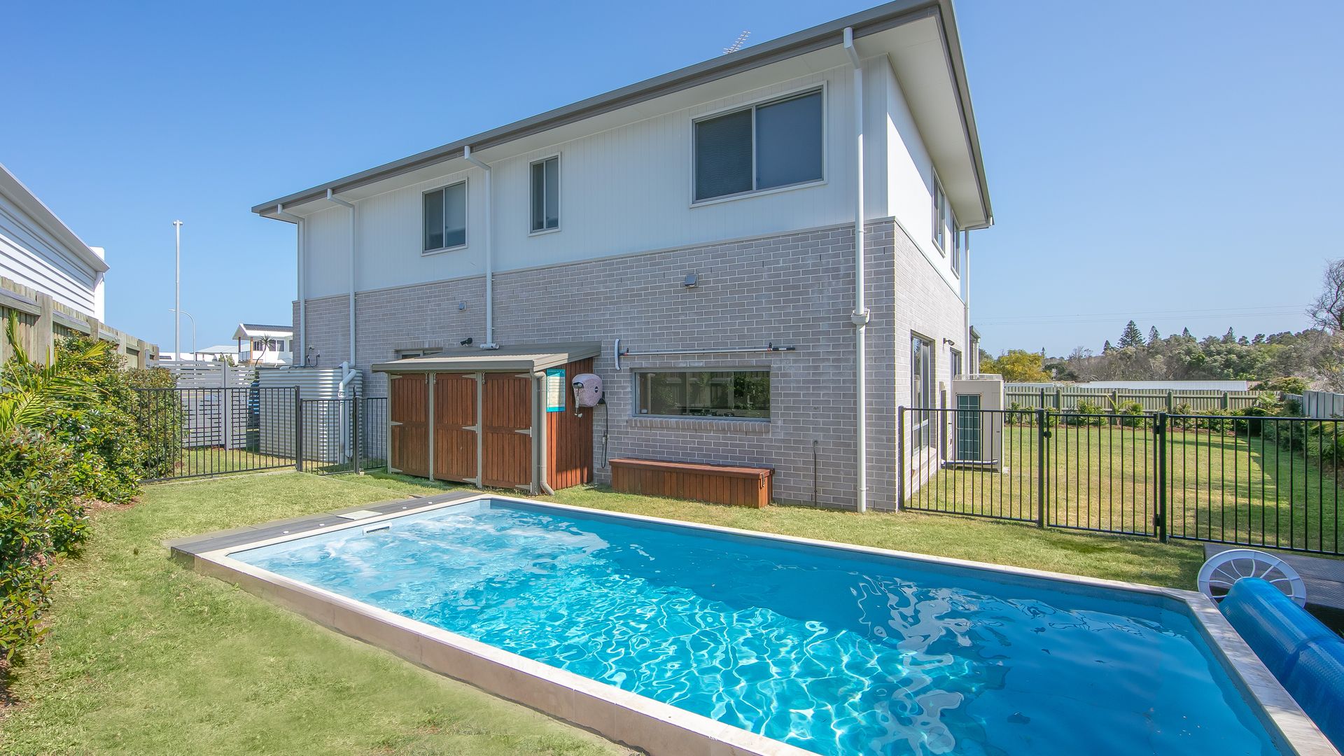 Just a minute’s walk from Pippi Beach, Surf & Dunes is designed for relaxed coastal living, offering plenty of space, modern comforts, and a heated pool. Styled with light, breezy coastal décor, this home captures plenty of sunshine and enjoys cool ocean breezes thanks to its elevated position.