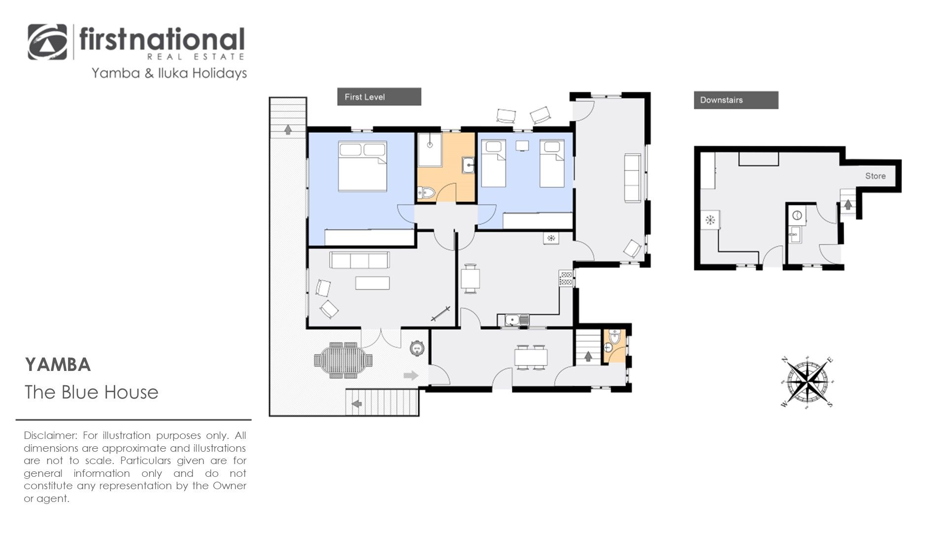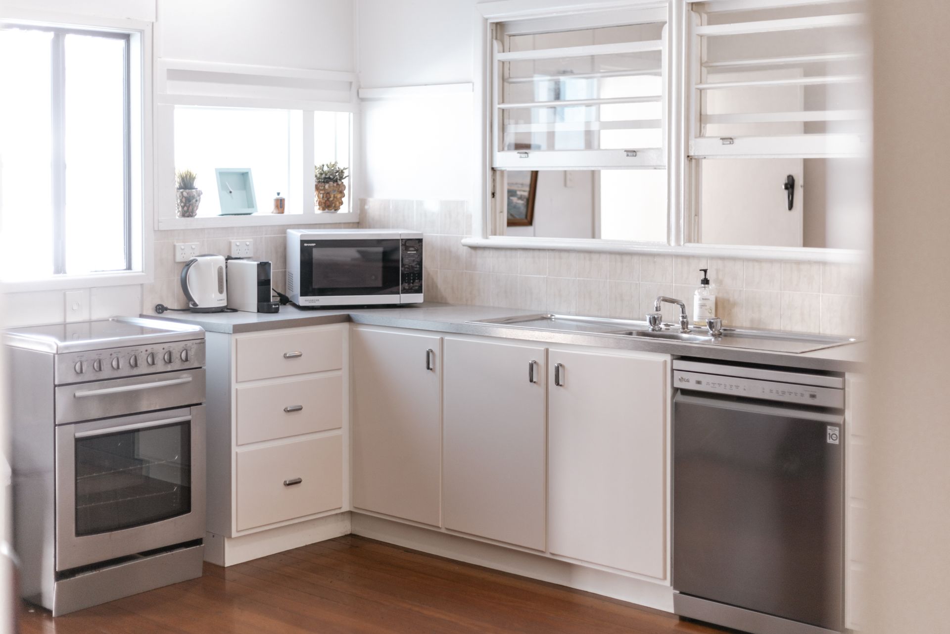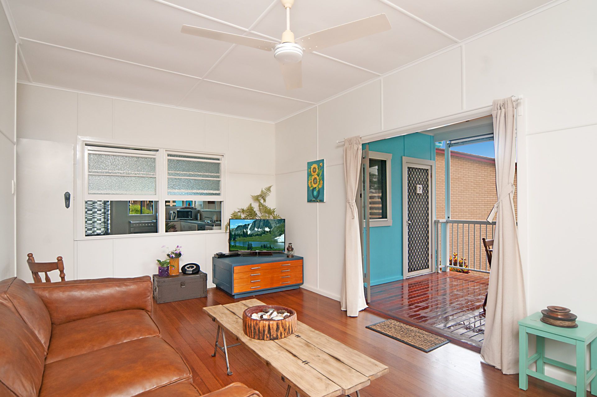 Styled to reflect its original character, The Blue House offers relaxed, easy living with French doors open from the living room onto a generous undercover deck — the perfect spot to gather for a BBQ after a day at the beach or to ease into the morning with coffee in hand.