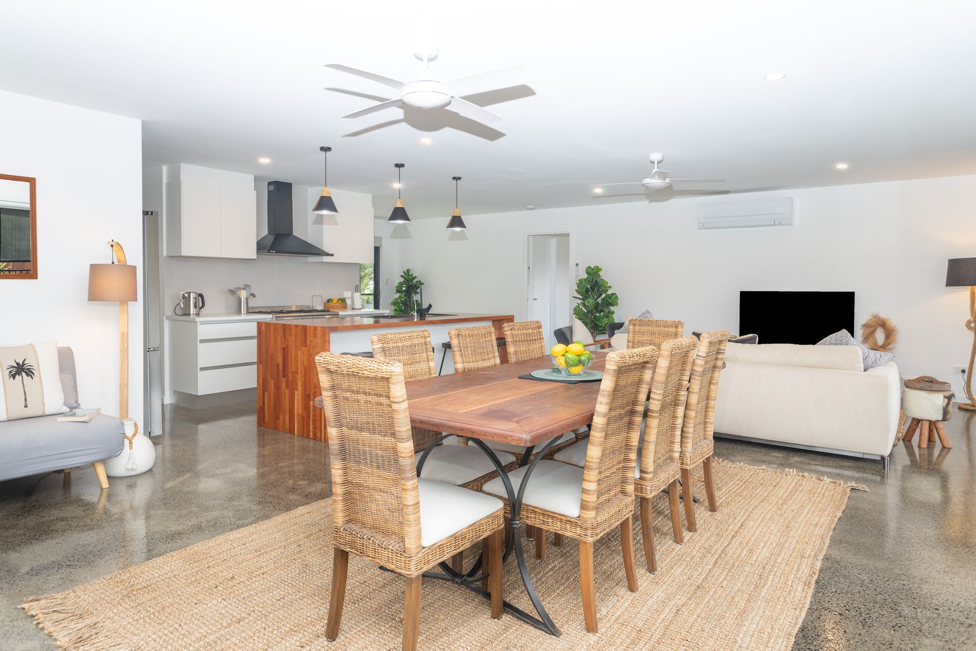 - Open-plan living and dining